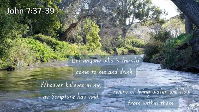 “On the last and greatest day of the festival, Jesus stood and said in a loud voice, ”Let anyone who is thirsty come to me and drink. Whoever believes in me, as Scripture has said, rivers of living water will flow from within them.“ By this he meant the Spirit, whom those who believed in him were later to receive. Up to that time the Spirit had not been given, since Jesus had not yet been glorified.”