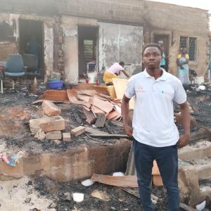 At the time of the fire, Philip's wife Awura was due to give birth. She had to go and stay with family in her hometown and Philip moved into temporary accommodation with his brother. As soon as it happened, High Priest Academy were able to provide Philip with some clothing and a few basic hygiene items (towel, sponge, toothbrush and toothpaste), but they had lost everything.